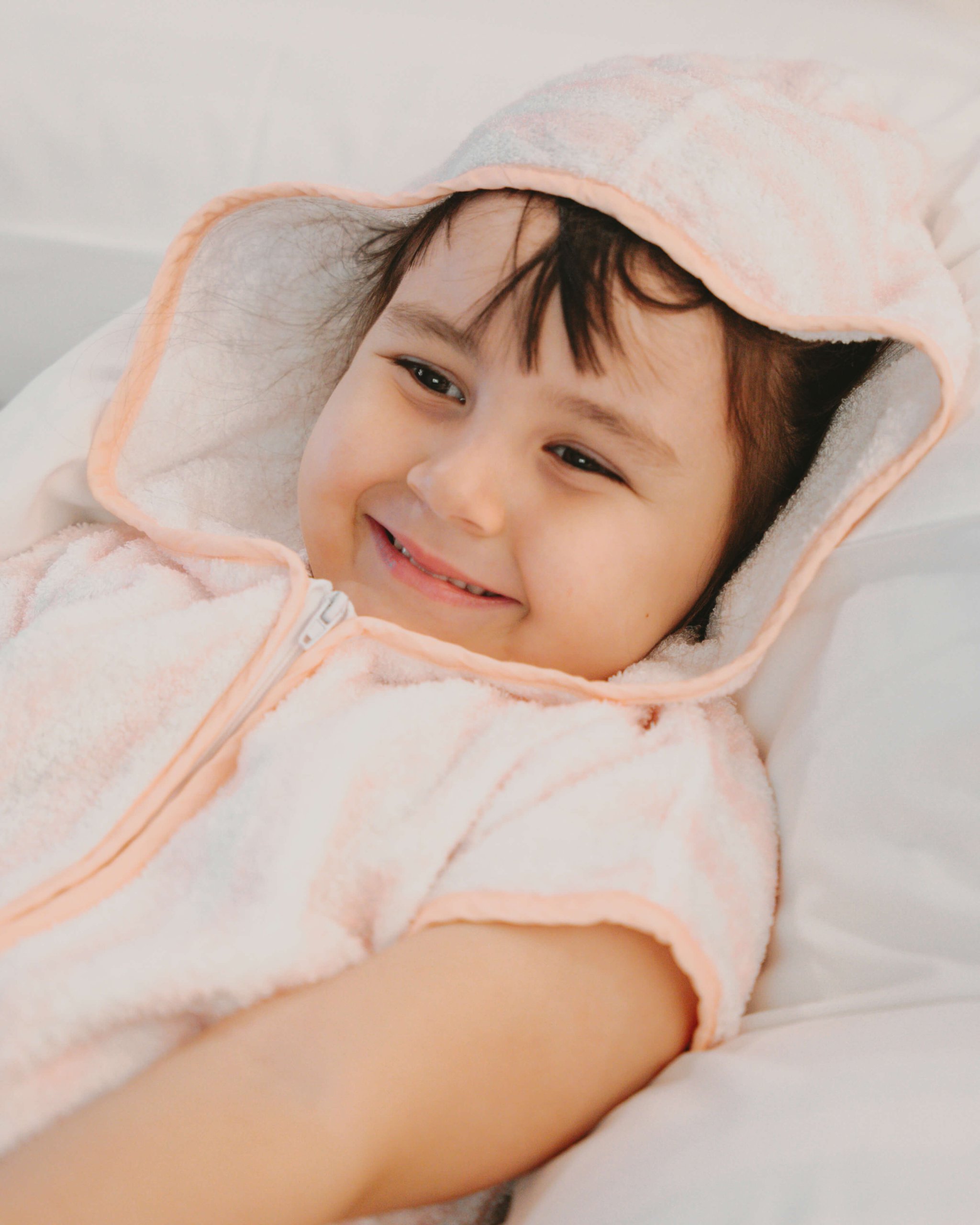 Features a hood, zip front closure for easy wearing, shorts sleeves to fit our tropical climate, and two pockets for fit all the essentials – goggles, snacks, seashells, favorite toy car… We’ve included every detail to create the most comfortable and functional hooded towel.
