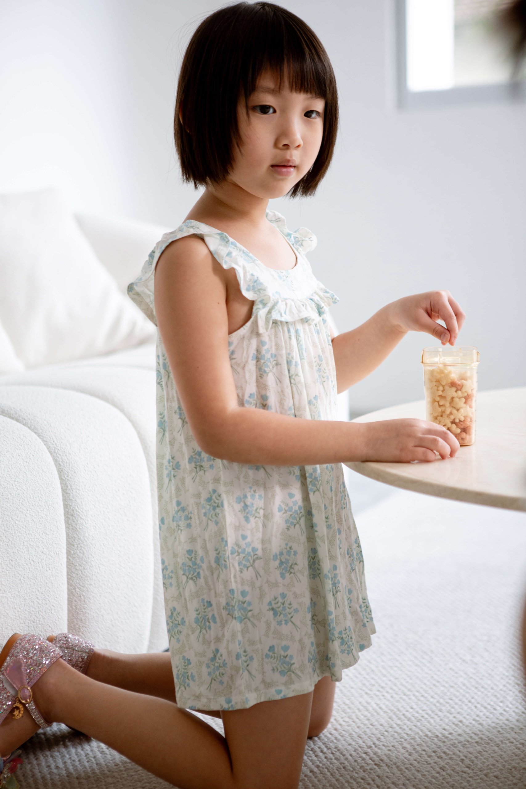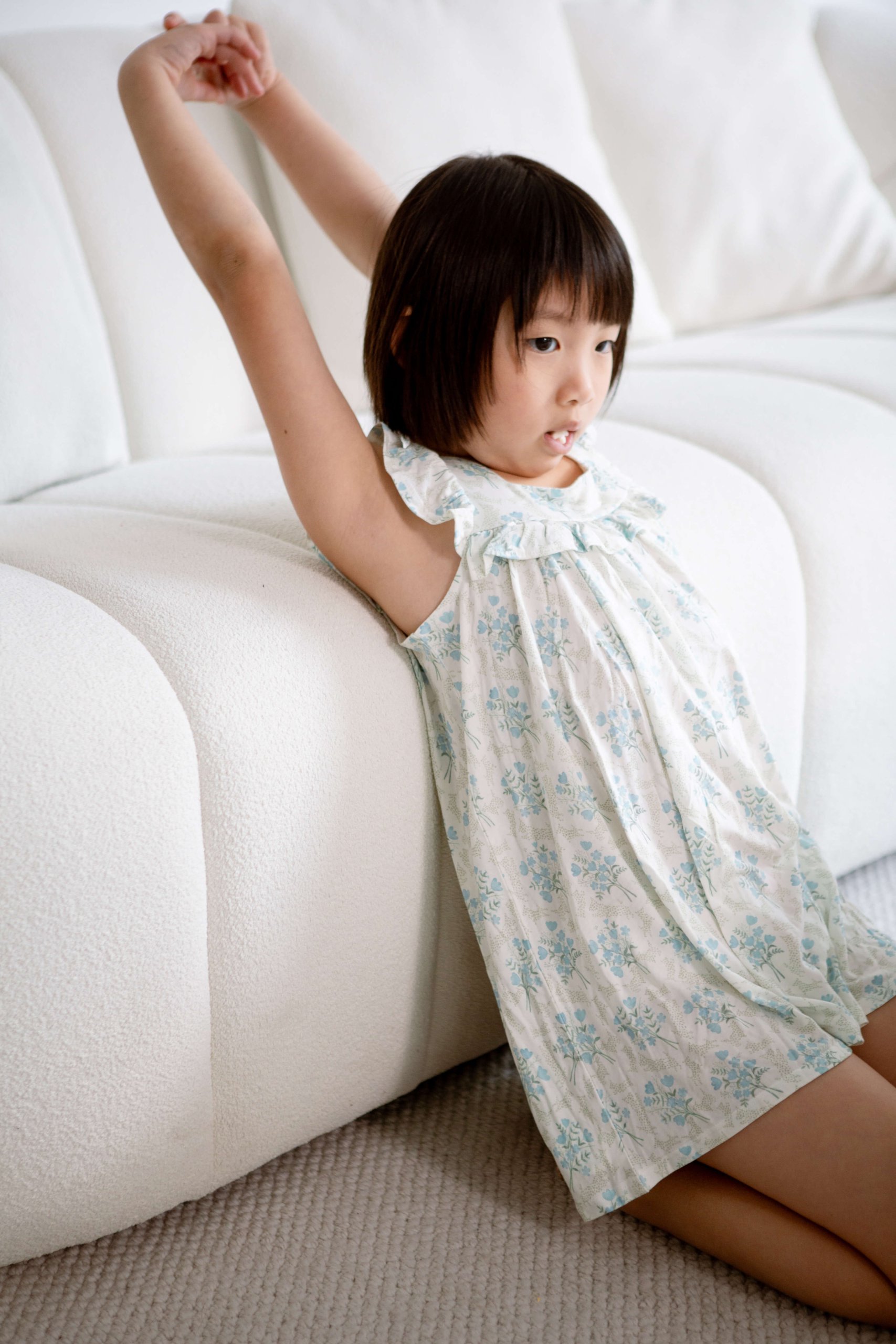 The Victorian (Blue Posies) print is a masterpiece, drawing inspiration from the opulent floral patterns of the Victorian era. It’s like stepping into a lush, secret garden where each posy whispers tales of the past, rendering it a truly significant addition to your child’s wardrobe.
