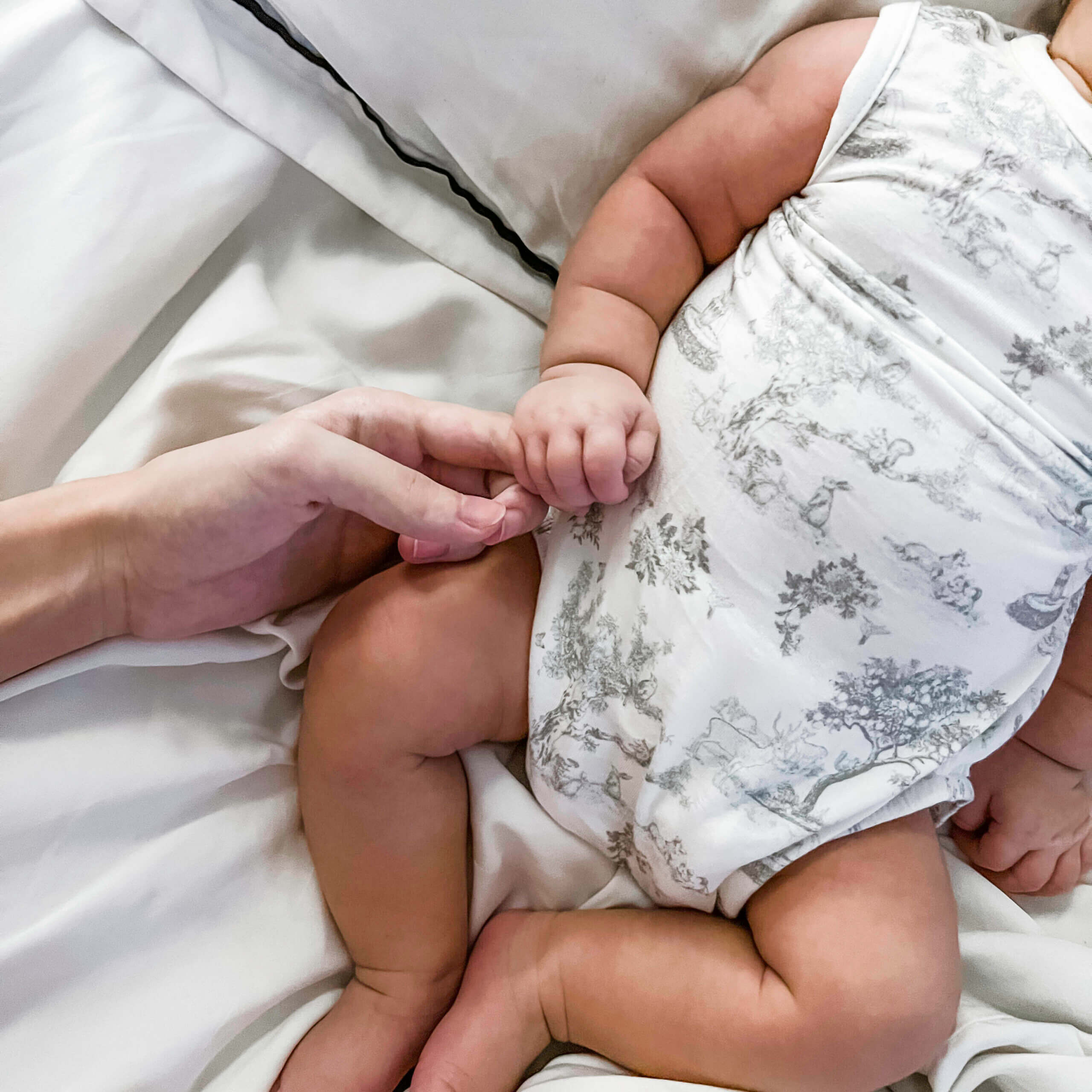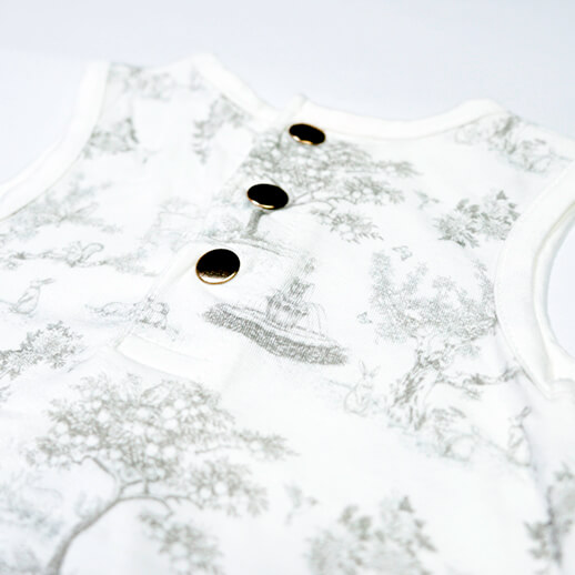 Like wearing a cloud, our Cloud Bubble Rompers features a crew neck and signature House of Holly Toile de Jouy print – a subtle yet polished look for both baby boys and girls.