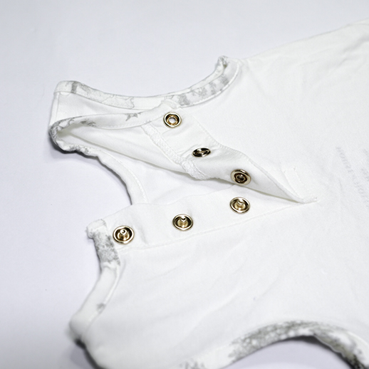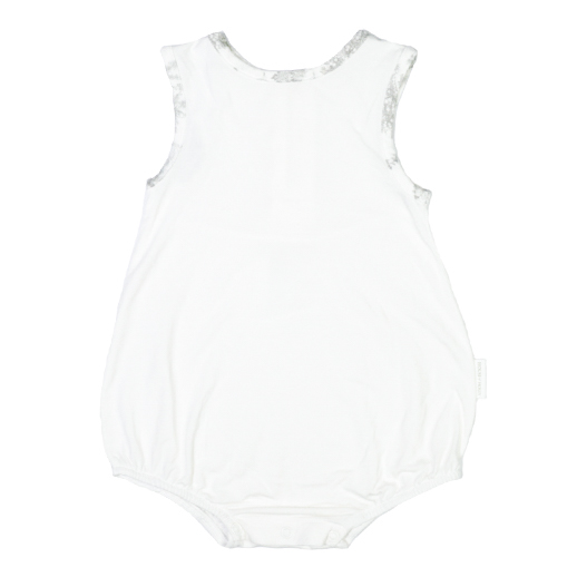 Four-way stretch romper with gold snap buttons on the back grows with your little bub, and makes for the perfect tropical weather comfort wear at home and out.