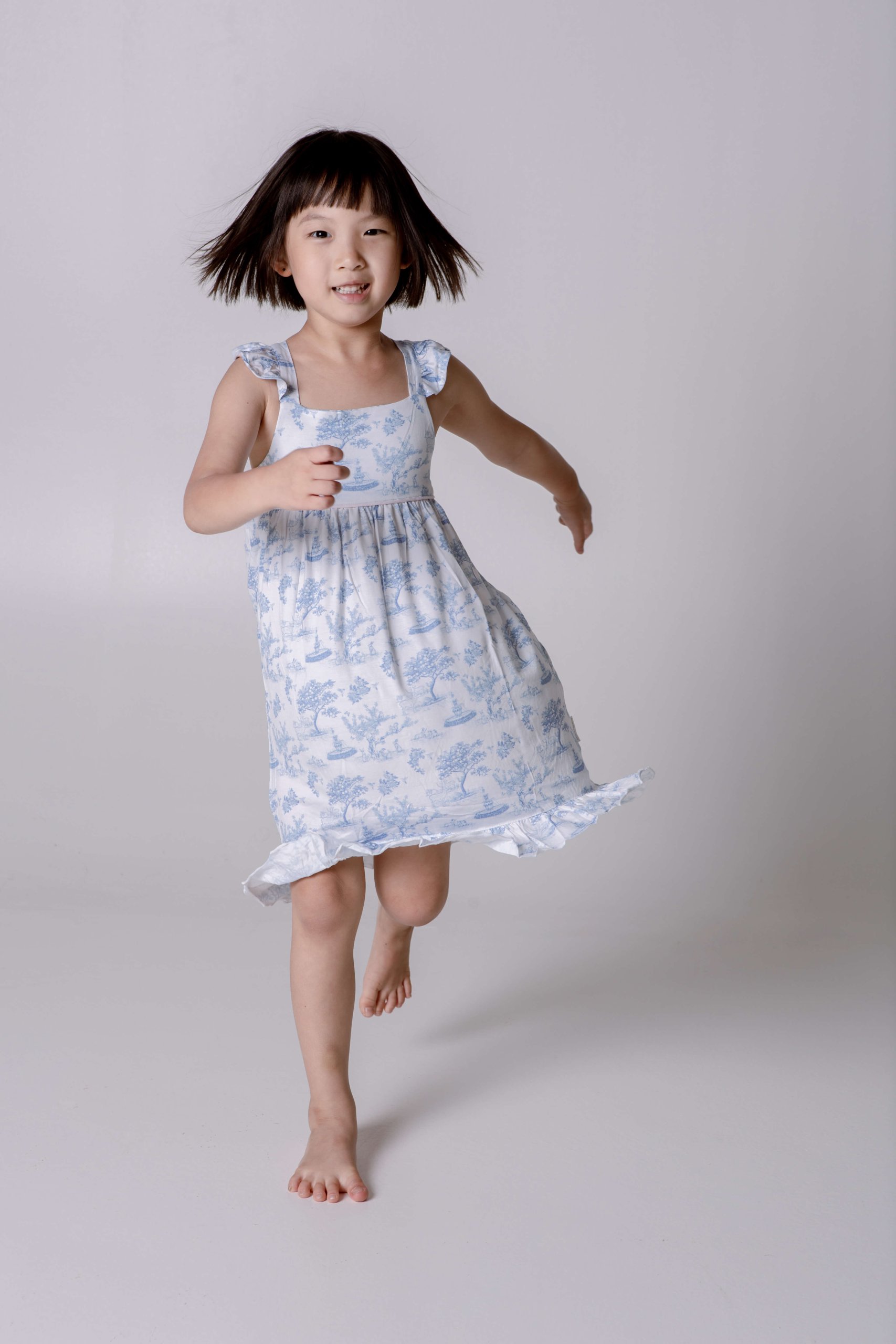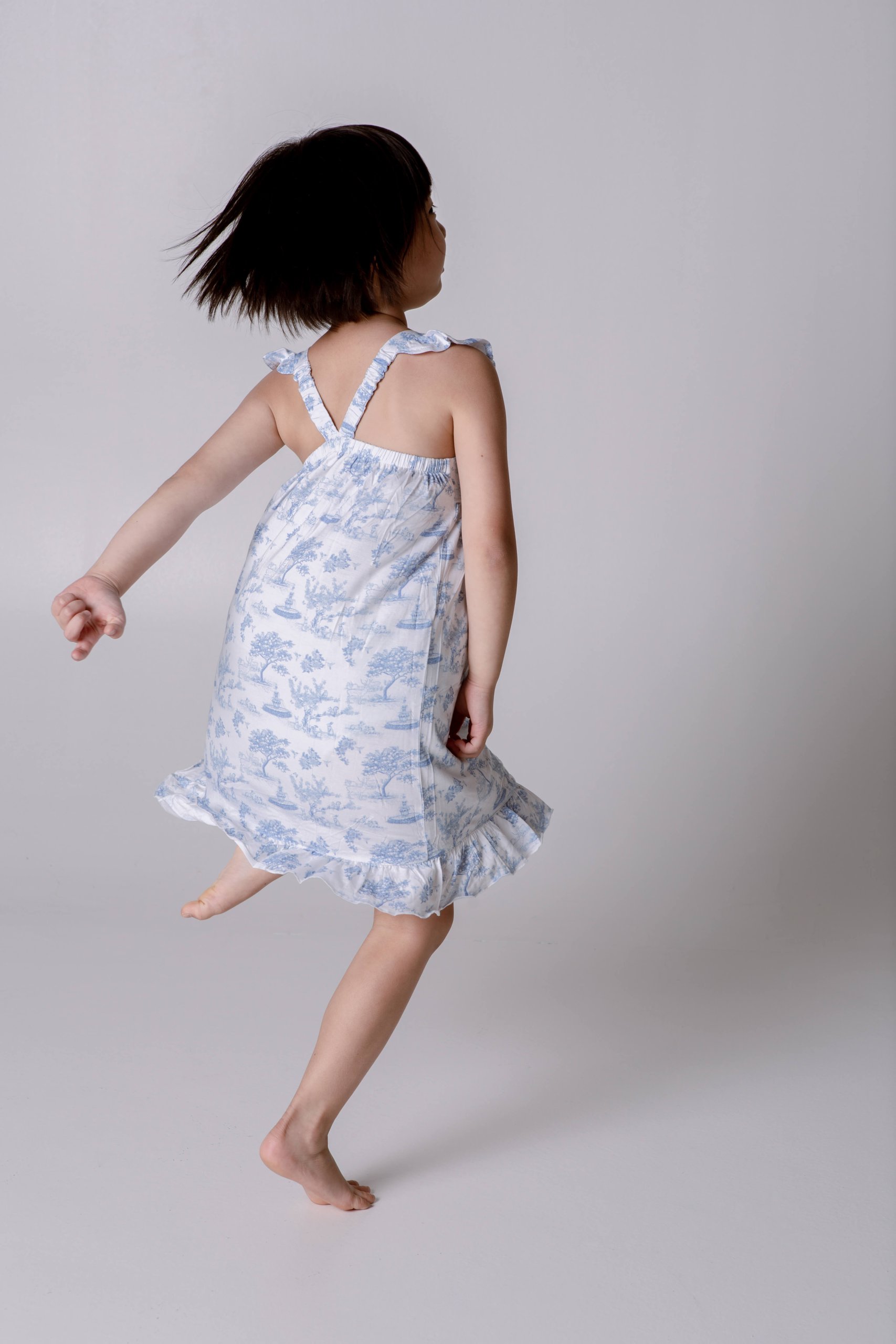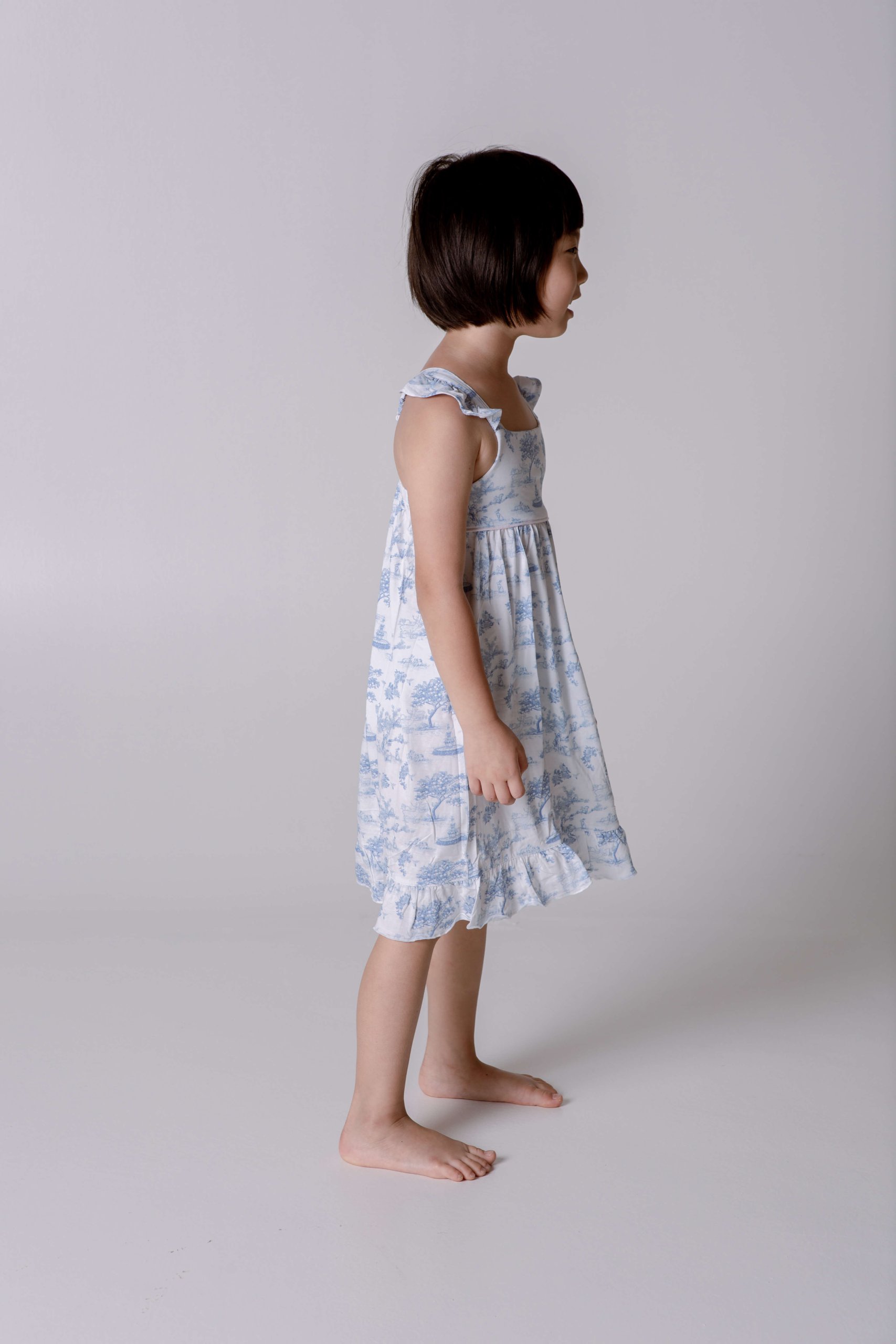 Ruffle Dress – Garden Toile (Baby Blue)