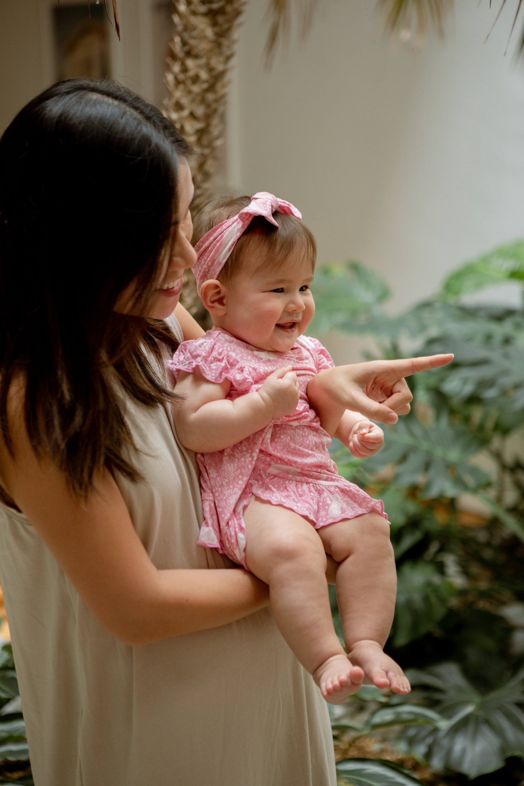 This baby girl ribbon headband is the perfect addition to her headband collection! Designed to be matched with our Rabbits Rendezvous collection of dresses and rompers.