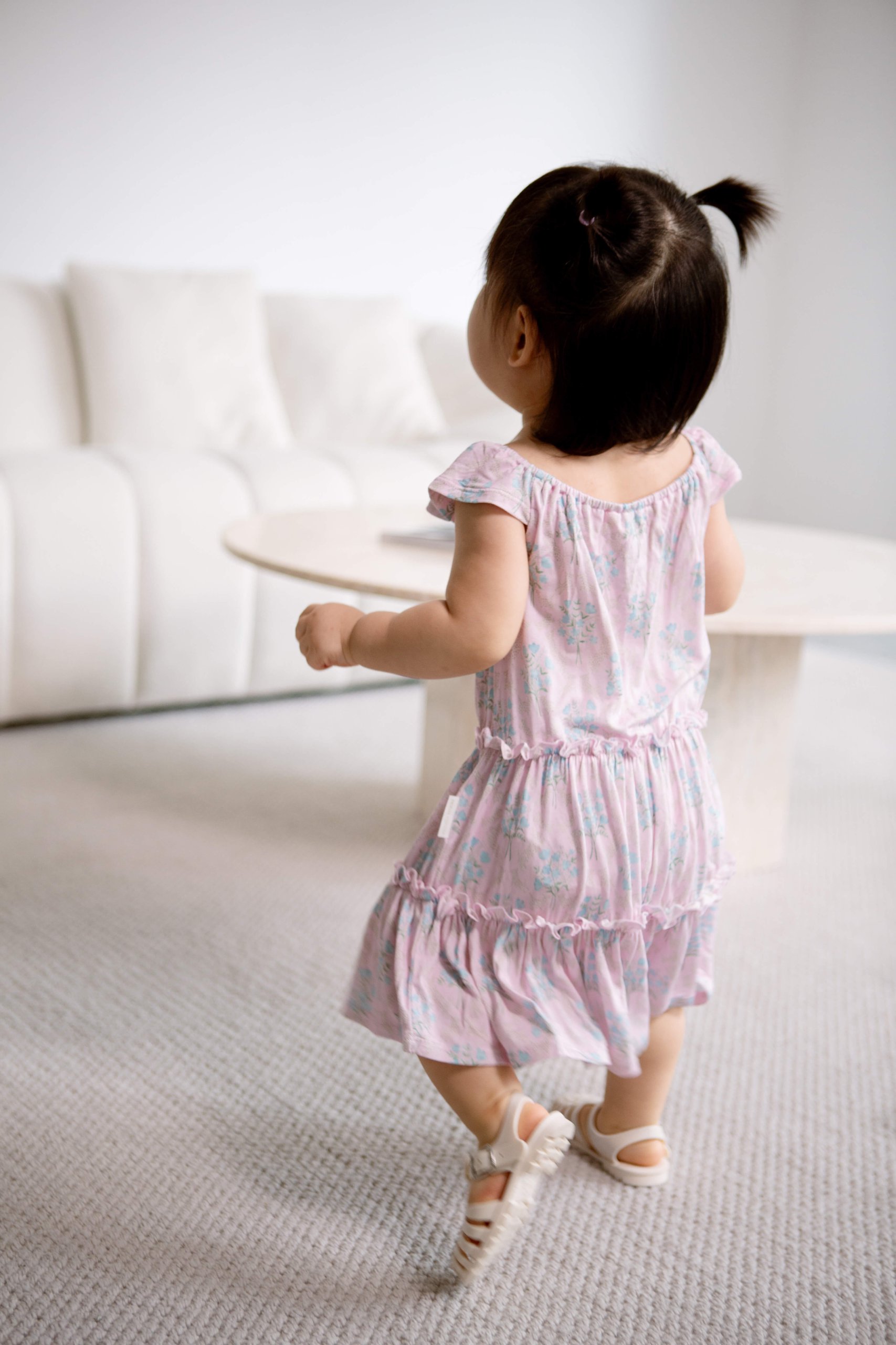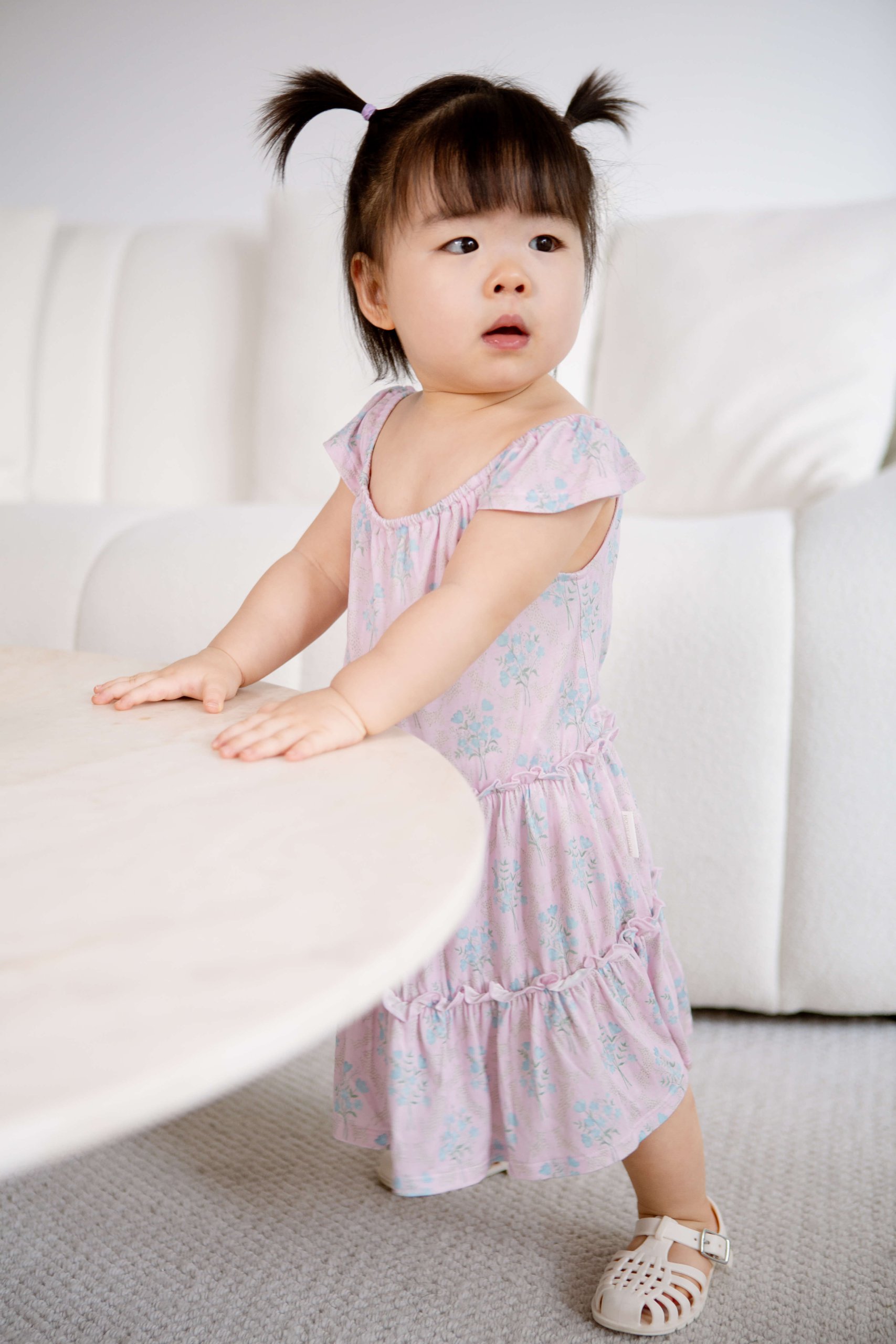 Transport yourself to the opulent Victorian era with its tiered design and delicate ruffle accents that evoke a sense of vintage charm. The Victorian (Blue Posies) print, inspired by the rich floral patterns of the past, transforms your child’s wardrobe into a world of timeless stories and elegance.